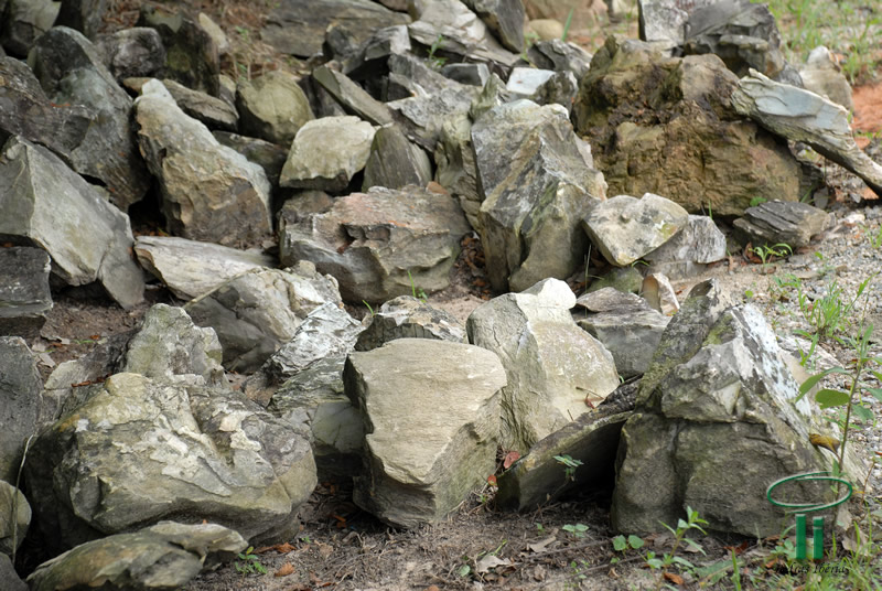 Rocha sedimentar com formas irregulares, algumas são mais “chapadas” outras arredondadas onde formam-se Pequenas fendas e covas.